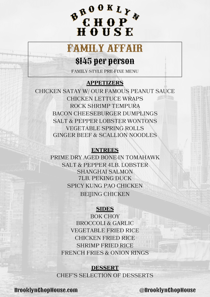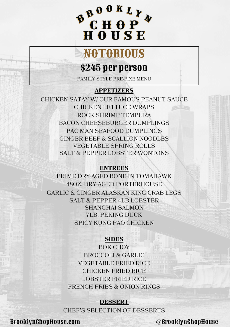 A full buyout at Brooklyn Chop House would guarantee you and your guest enjoy the ultimate private dining experience. We would close our restaurant to all outside customers, to ensure your guests have exclusive use of the entire restaurant.